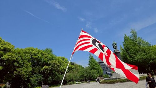 時間14:00~15:20 突撃隊4名第2の聖地、水道橋へ出撃。四つ巴の旗をたなびかせ、 颯爽と行進する。桜満開、花満開の中、撮影を終え現地到着。 支援者SM氏、今かと今かと我ら突撃隊の到着を待つ。設営完了。 稲美部長はここにて別動。集会開始迄、わが党歌「…